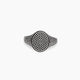 Anello aperto e regolabile in argento rodiato con zirconi bianchi.