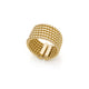 Anello a fascia con sei fili di catena a palline. Il design avvolgente di questo anello attesta il talento creativo e lo spirito innovativo ed irriverente che anima i gioielli UNOAERRE. Una creazione unica che rinnova i canoni della gioielleria tradizionale ed il fascino dell'iconico anello a fascia ricoprendolo di piccole sfere scintillanti. MUST HAVE.