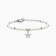 Bracciale da donna regolabile in acciaio con sfere e ciondolo a forma di angelo con cristallo.