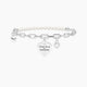 Bangle in acciaio con ciondolo cuore con rifinitura a contrasto effetto borchiato in color oro rosa. Simbolo dell'Infinito sul fronte e scritta "Infinity" smaltata con punto luce stella sul retro. Chiusura del bracciale a forma di cuore.