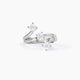 Anello da donna regolabile in argento rodiato con rubino sintetico taglio ovale e zirconi bianchi.