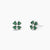 Orecchini a lobo da donna in argento rodiato a forma di quadrifoglio con smeraldi sintetici taglio cuore e zirconi.