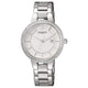 Cassa in acciaio con cristalli sulla lunetta. Bracciale acciaio. Vetro minerale. Quadrante con 6 cristalli applicati. WR 5 bar.